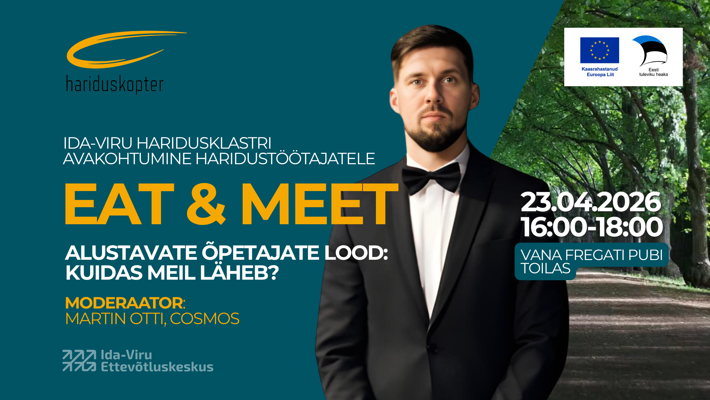 💛 Ootame teid Ida-Viru Hariduskopteri esimesele EAT&Meet avakohtumisele, mis toimub neljapäeval, 23. aprillil kell 16.00–18.00 Toila Vana Fregati pubis.